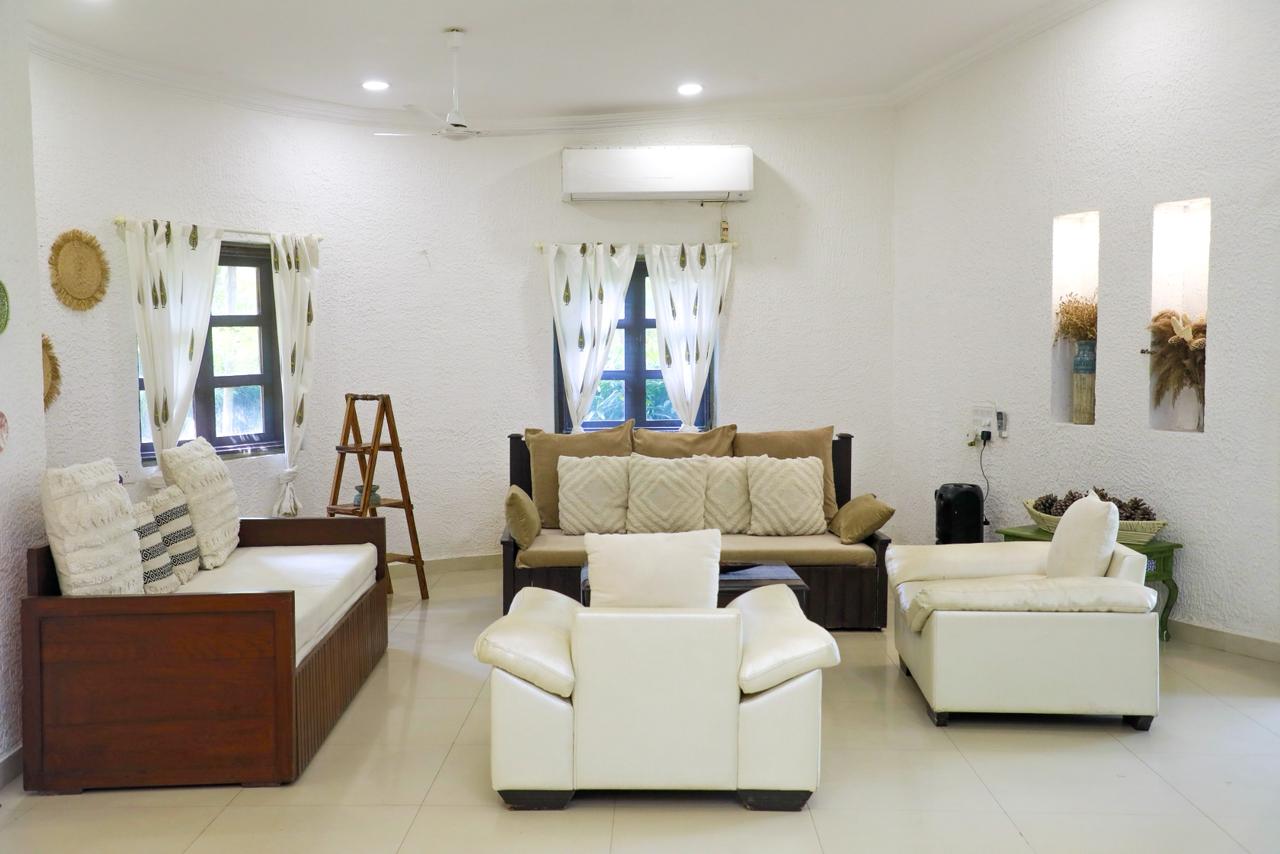With multiple bedrooms, large living areas, lawn, terrace and veranda, the villa offers complete privacy and ample space for up to 15 guests.