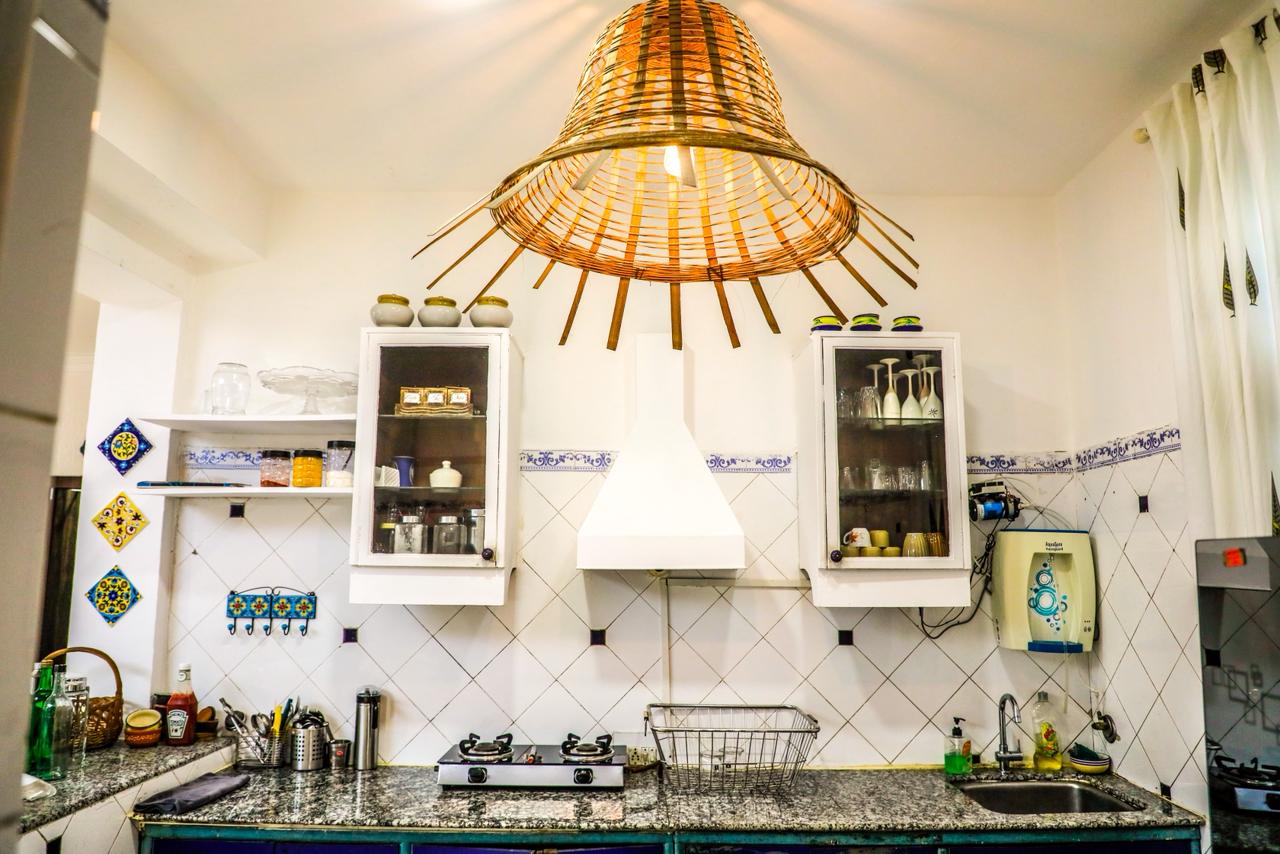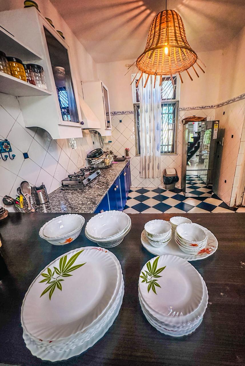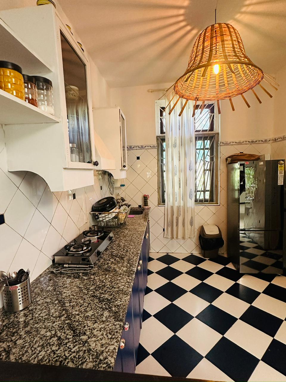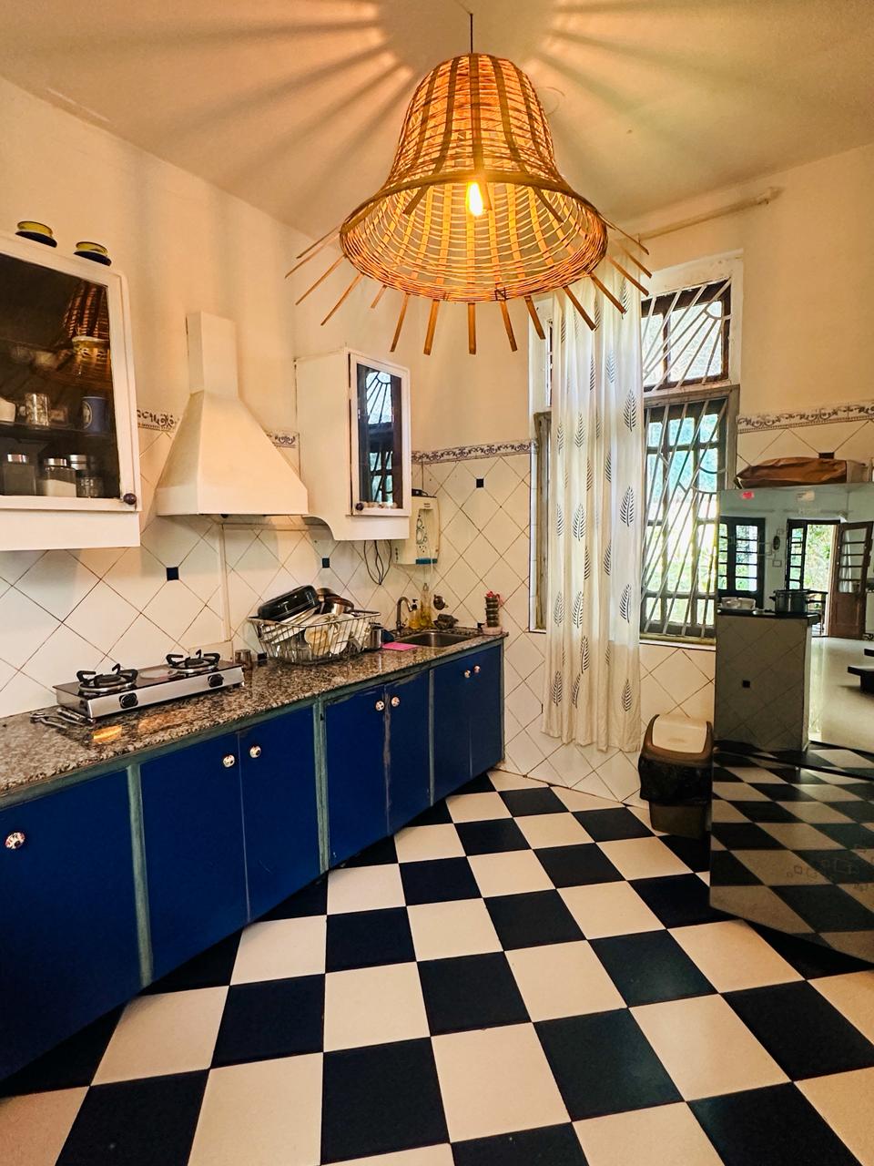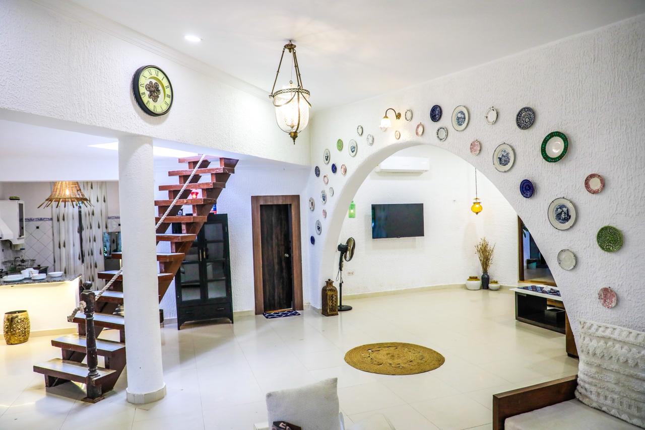 The living room is thoughtfully divided into two functional sections. One section features a comfortable seating area with TV for entertainment and relaxation. The second section includes a large seating area ,a dining hall with adjoining open kitchen creating a warm and social space for meals and gatherings .